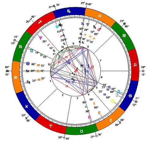 - ↑ Het inconjunct is een aspect dat vroeger als zwak werd beschouwd. Enkele moderne astrologen, zoals Karen Hamaker, hechten echter meer belang aan dit aspect.