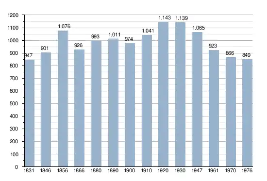 - Bron: NIS; Opm:1806 t/m 1970=volkstellingen; 1976=inwoneraantal op 31 december
