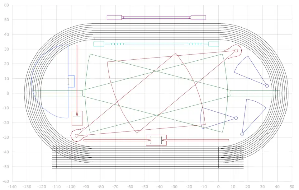In de tekening staat een heel grote baan: 12 sprintbanen en 9 banen in het rond (10 komt ook voor).