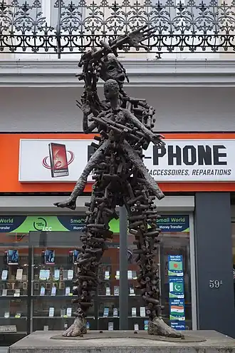 - ↑ a b Standbeeld van Congolese kunstenaar opnieuw thuis in Elsene. www.bruzz.be. Gearchiveerd op 23 april 2019. Geraadpleegd op 23 april 2019.