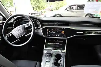 Een groot verschil is er in het interieur, dat grotendeels overgenomen wordt van de A7 en A8. Het meest opvallende zijn de twee schermen in de middenconsole. De bovenste is een traditioneel touchscreen waar allerlei zaken geregeld kunnen worden. Het onderste scherm heeft haptische feedback, dat wil zeggen dat er een gevoel wordt doorgegeven bij het indrukken van het scherm. Op dit scherm worden zaken als climate control geregeld, of, als men iets wil intypen op het bovenste scherm, als toetsenbord. Dit zorgt ervoor dat er nog maar een heel beperkt aantal fysieke knoppen aanwezig is. De twee schermen zitten naadloos in het dashboard geïntegreerd en er is dus geen rechtopstaand scherm zoals in kleinere Audi's. Ook is de Audi Virtual Cockpit voortaan op de A6 beschikbaar, hoewel optioneel.