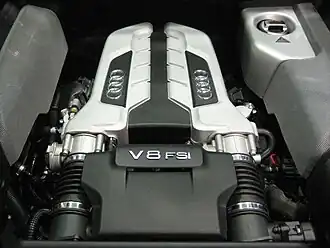 De Audi R8 4.2 FSI quattro heeft een 4,2-liter V8 FSI-motor die 420 pk bij 7.800 tpm en een koppel van 430 Nm bij 4.500 tpm levert en tevens gebruikt werd in de Audi RS4 B7. De motor heeft een maximum toerental van 8.250 tpm en is voorzien van directe benzine inspuiting hetgeen een hoge compressieverhouding mogelijk maakt. De V8 heeft 4 kleppen per cilinder die bediend worden door twee dubbele bovenliggende nokkenassen met variabele kleptiming. Voor de R8 is de motor voorzien van dry-sump smering. In 2011 werd de V8 verbeterd en leverde nu 430 pk, terwijl het koppel gelijk bleef.