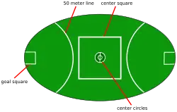 Aussie rules wordt gespeeld op een elliptisch veld, een veld van hetzelfde type om cricket op te spelen. Het veld heeft aan beide zijden vier doelpalen. Vanuit het verste punt worden twee 50 meterlijnen getrokken en het midden heeft een vierkant met zijden van 50 meter. Het spel wordt gespeeld door twee teams met achttien man op het veld en vier vervangers (noot: dit kan verschillen van league en voor vriendschappelijke wedstrijden). De vervangers mogen vrij gebruikt worden om ongelimiteerd te wisselen. Een speler die bloedt mag niet langer op het veld staan en moet direct gewisseld worden, deze mag het veld weer op als de bloeding behandeld is door de teamdokter en gestopt.