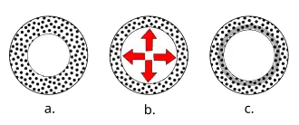 Er wordt begonnen met een stalen buis met een diameter kleiner dan wat gewenst is. De buis wordt onder genoeg druk gezet om de binnendiameter zoveel op te rekken dat deze plastisch vervormt. Dat wil zeggen dat de binnendiameter niet naar zijn oorspronkelijke afmeting terugkeert. De buitendiameter zal ook opgerekt worden; deze blijft echter tijdens het oprekken binnen zijn elastische gebied en zal dus terug willen keren naar zijn oorspronkelijke afmeting. De reden dat dit mogelijk is, is dat de spanningsverdeling in het materiaal niet uniform is. De rek is evenredig met de drukspanning in het elastische gebied, daarom is de uitrekking in de buitenste lagen kleiner dan in de boring. Doordat de buitenlaag niet plastisch wordt vervormd zal deze altijd terug willen keren naar zijn oorspronkelijke staat, alleen zal dit niet lukken omdat de binnendiameter blijvend vervormd is. De binnendiameter wordt onder druk gezet door de buitendiameter, als een soort krimpverbinding. De volgende stap is het ontlaten van het materiaal door middel van hittebehandeling op een relatief lage temperatuur, waardoor de rekgrens op zijn minst de gebruikte autofrettagedruk aankan. Vervolgens kan de buis getest worden door hem onder druk te zetten, maar er moet wel op gelet worden dat de nieuwe rekgrens niet overschreden wordt.
