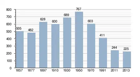 - Bron: INE, 1857-2011: volkstellingen