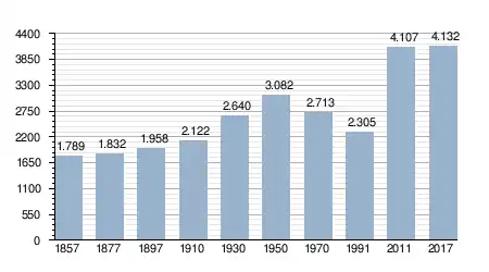 - Bron: INE, 1857-2011: volkstellingen
