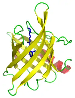 - ↑ (en) Murzin, AG, Lesk AM, Chothia C (1994). Principles determining the structure of beta-sheet barrels in proteins. II. The observed structures. Journal of Molecular Biology 236 (5): 1382–400. PMID: 8126727. DOI:10.1016/0022-2836(94)90065-5.