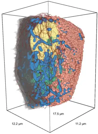 - ↑ a b c Müller A.; Schmidt D.; C. Shan Xu; Song Pang; Joyson Verner D’Costa; Kretschmar S.; Münster C.; Kurth T.; Jug F.; Weigert M.; Hess H.F.; Solimena M. (2021). 3D FIB-SEM reconstruction of microtubule–organelle interaction in whole primary mouse β cells. Journal of Cell Biology. Structural Biology 2021 (en inglés) 220 (2): e202010039. PMC 7748794.