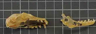 | Boven- en onderkaak van de Büttikovervleerhond | |||||||||||||