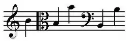 De B (ook wel si, of ti genoemd) is een muzieknoot die een hele toon hoger ligt dan de A en een halve toon lager dan de C.