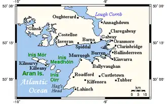 De baai is zo'n 50 kilometer lang en tussen de 10 en 30 kilometer breed. De Araneilanden (Oileáin Árann) liggen westelijk van de ingang van de baai en talloze andere kleine eilanden liggen in de baai zelf.