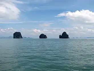 Het meest bekende eiland in de baai is de naaldvormige kalkrots Khao Tapu. De rots, vaak in combinatie met het nabije eilandenpaar Khao Phing Kan, wordt wel aangeduid als 'James Bondeiland', omdat scènes uit de film The Man with the Golden Gun hier zijn opgenomen.