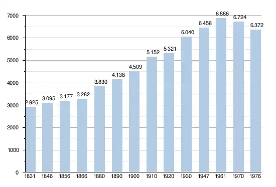 - Bronnen:NIS, Opm:1831 tot en met 1970=volkstellingen; 1976 = inwoneraantal op 31 december