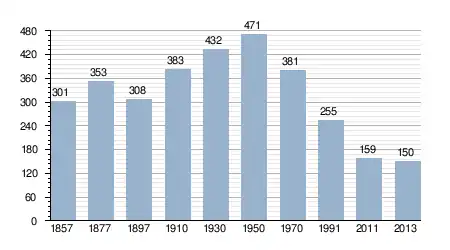 - Bron: INE, 1857-2011: volkstellingen