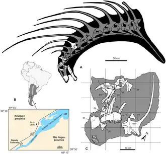 In 2013 ontdekte een team onder leiding van Pablo Gallina en samengesteld uit medewerkers van CONICET (Consejo Nacional de Investigaciones Científicas y Técnicas), de Fundación Félix de Azara, de Universidad Maimónides, en het Museo Paleontológico Ernesto Bachmann op het land van A. Thaux en E.J. Thaux op de vindplaats van Bajada Colorada, veertig kilometer ten zuiden van Picún Leufú het skelet van een sauropode. Het werd geprepareerd door J. Pazo, M. Ripoll, M. Soto, A. Moretti, L. Ripoll en J. Aroca.