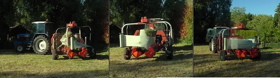 Voor het later verpakken van verschillende maten balen is de onafhankelijk werkende wikkelmachine ontwikkeld. De balen worden opgepakt en vervolgens omwikkeld met 5 tot 8 lagen folie.