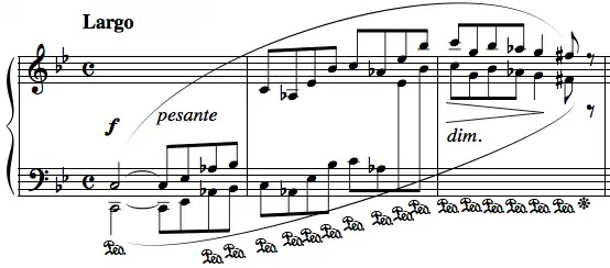 Deze inleiding sluit af met een vragend schrijnend akkoord, waarna het hoofdthema in "Moderato" tempo volgt: