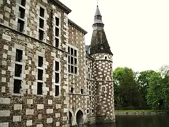 Een bijzonder voorbeeld van een gebouw met speklagen is het kasteel van Jehay. De speklagen in de gevels worden onderbroken, waardoor een gestippeld beeld ontstaat.