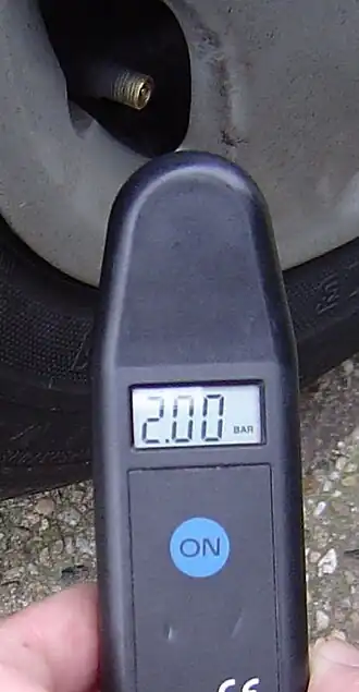 Hoewel de officiële SI-eenheid voor druk de pascal is, wordt bandenspanning vaak uitgedrukt in bar, waarbij (per definitie) 1 bar overeenkomt met 100 000 pascal.