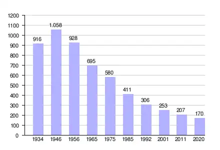| Bevolkingsontwikkeling tussen 1934 en 2020 |