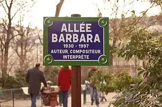 In 1998 heeft de gemeente Saint-Marcellin waar het gezin met Barbara in de Tweede Wereldoorlog was ondergedoken besloten om een plein naar haar te noemen; ook organiseert men er verschillende activiteiten rondom haar. In 2018 werd aan lijn 4 van de Metro van Parijs een station[6] naar haar genoemd; dit station Barbara werd in 2022 geopend.