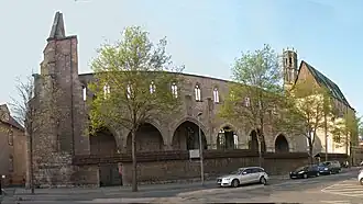 In 1224 streken de eerste Franciscaanse bedelmonniken in Erfurt neer, die vanwege het ontbreken van schoeisel ook barrevoetse monniken werden genoemd. Zeven jaar later werd de eerste kloosterkerk van de bedelorde gebouwd. Na een stadsbrand in 1291 werd begonnen met een nieuwbouw, waarvan het koor in 1316 werd gewijd. De bouwwerkzaamheden aan de drieschepige pijlerbasiliek duurden voort tot het begin van de 15e eeuw. De hooggotische kerk met een doorgaand zadeldak behoorde tot de grootste kerken van de stad en bleef gedurende eeuwen een markant gebouw.