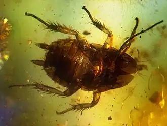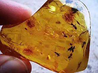 Soms komt een insect in de vloeibare hars terecht. Dit fossiel blijft in de versteende barnsteen zichtbaar. Door de ouderdom verdwijnen de kleuren van het insect en wordt het zwart. In tegenstelling tot wat in de film Jurassic Park wordt gesuggereerd, is het niet mogelijk om DNA van dieren zoals dinosauriërs uit door fossiele insecten opgezogen bloed te halen.[5]
