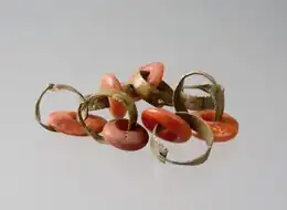Uit alle perioden van de prehistorie is het gebruik van barnsteen als kralen, hangers en knopen bekend. De rendierjagers van de Hamburgcultuur, die omstreeks 11000 v.Chr., aan het eind van de laatste ijstijd rondtrokken gebruikten barnsteen. Barnsteen is in hun kampen in Nederland opgegraven bij Ureterp en Vledder. Klei en veen zijn gunstig voor de conservering van barnsteen. In de zandgronden verweert het echter snel en neemt het een zandkleur aan. Waarschijnlijk is het daarom vrij weinig gevonden in mesolithische nederzettingen op de Nederlandse zandgronden. In een skeletgraf bij Swifterbant uit 4000 v.Chr., werd op het voorhoofd van een dode man een snoer van vijf grote barnstenen kralen gevonden. Ook werd barnsteen aangetroffen in enkele hunebedden. Ook in het kralensnoer van Exloo is barnsteen verwerkt.