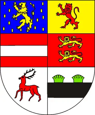 Nassau-Dietz (1607-1640): 1. Nassau, 2. Katzenelnbogen; 3: Vianden; 4: Dietz; 5: Spiegelberg; 6: Liesveld