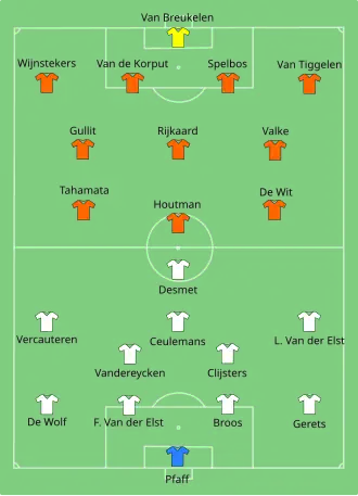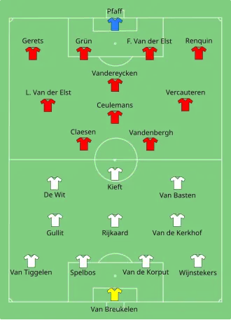 - ↑ België werd in 1980 Europees vicekampioen en zou op het WK 1986 vierde worden.