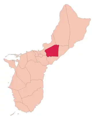 - ↑ a b c (en) Table 3a. Population, Housing Units, Land Area, and Density by Municipality for Guam: 2010. United States Census Bureau. Geraadpleegd op 9 februari 2016. . De vierkante mijlen zijn omgerekend naar vierkante kilometers via Metric Conversions.org en op twee decimalen afgerond.