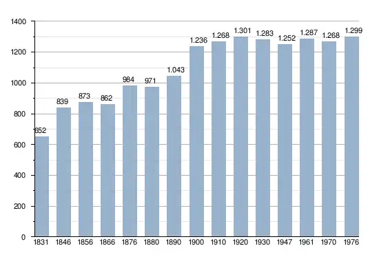- Bron: NIS; Opm:1831 t/m 1970=volkstellingen, 1976= inwoneraantal op 31 december