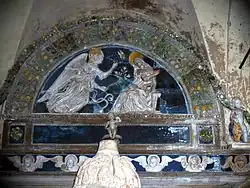 Op de muur, achter deze doopvont, staan er hogerop twee 15de-eeuwse terracotta lunetten : “De Aankondiging” en “Sint Bartholomeus”. Beide worden toegeschreven aan de school van Andrea della Robbia.