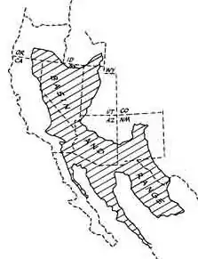 De Basin and Range Province omvat in het noorden het Great Basin en het Modoc Plateau. In het zuiden loopt het gebied door in de hooggelegen Mojave Desert en de lagere Sonora- en Chihuahuawoestijnen. Het omvat daarmee ook het gebied rond de Golf van Californië.
