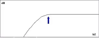 In de bovenste grafiek wordt het frequentieverloop weergegeven van een gesloten kast. De zogenaamde rolloff, het afvallen van de geluidsdruk aan de linkerzijde is voor gesloten kasten 12 dB/octaaf. Deze rolloff begint bij de blauwe pijl.