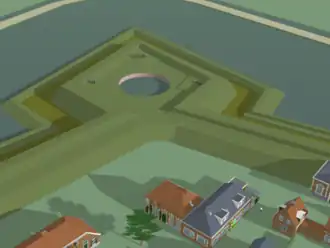 Op het terrein van 't Kleuterbastion en het naastgelegen voetbalveld lag het acht meter hoge volle bastion, voorzien van drie katten in iedere hoek. Het terreplein was toegankelijk middels oprillen vanaf de Hozenstraat, en mogelijk via 't Zand.