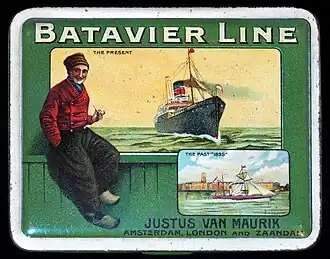 De Batavier was de houten, met stoom aangedreven raderboot die hiervoor gebruikt werd. Hij nam niet alleen pakketten mee, maar er konden 620 passagiers mee en er waren 120 slaapplaatsen.[1] In 1855 werd De Batavier vervangen door de Batavier, die een ijzeren romp had. In 1872 werd deze vervangen door de tweede Batavier. In 1895 werd het bedrijf verkocht aan Wm. H. Müller & Co in Rotterdam.