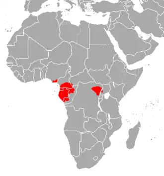 | Verspreidingsgebied van bates' dwergantilope | |||||||||||||