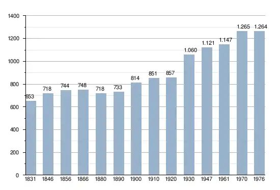 - Bron: NIS; Opm:1831 t/m 1970=volkstellingen; 1976=inwoneraantal op 31 december
