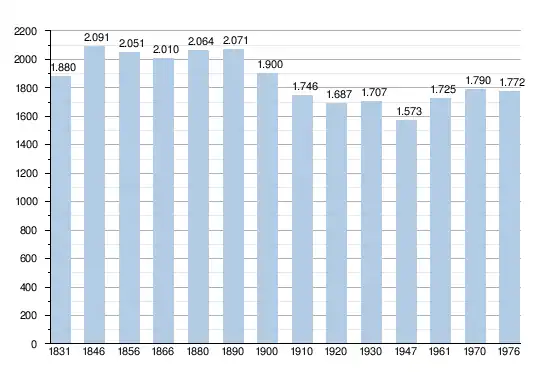 - Bron:NIS - Opm:1831 t/m 1970=volkstellingen; 1976= inwoneraantal op 31 december