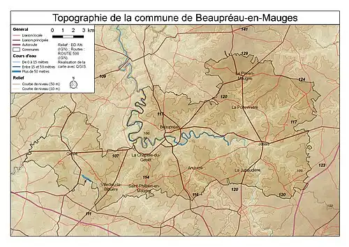 De oppervlakte van Beaupréau-en-Mauges bedroeg op 1 januari 2022 230,45 vierkante kilometer; de bevolkingsdichtheid was toen 103,7 inwoners per km².