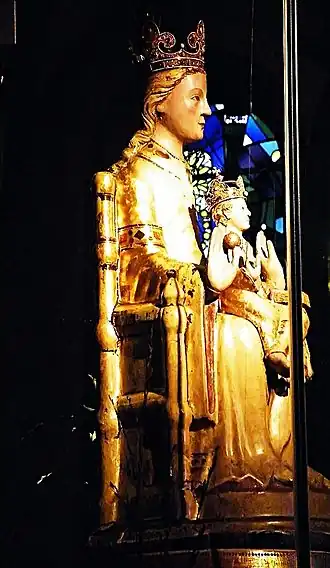 In de 13e eeuw werd het beeld met een dun stuclaagje bekleed en vervolgens verguld, de sierstenen werden eveneens beschilderd. Het gezicht en de haren van Maria en de haren van het Kind Jezus werden in de 14e eeuw van een stuclaagje voorzien. In de tweede helft van de 15e eeuw werden de huidtinten aangebracht. De Madonna is sinds 1911 gekroond.