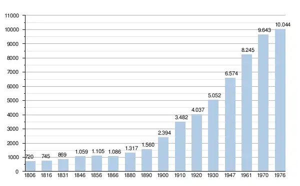 - Bronnen:NIS, Opm:1806 tot en met 1970=volkstellingen, 1976= inwonersaantal op 31 december