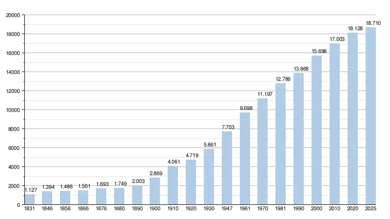 Alle historische gegevens hebben betrekking op de huidige gemeente, inclusief deelgemeenten, zoals ontstaan na de fusie van 1 januari 1977.