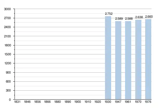 - Bronnen:NIS, Opm:1930 tot en met 1970=volkstellingen; 1976 = inwoneraantal op 31 december