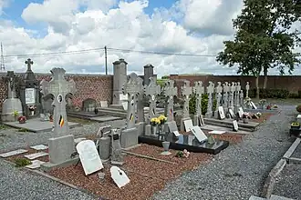 Vlak bij de toegang liggen de graven van 30 Belgische gesneuvelden, oud-strijders en krijgsgevangenen uit de beide wereldoorlogen.