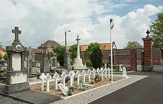 Direct aan de ingang ligt een perk met 20 Franse militaire en burgerslachtoffers uit de beide wereldoorlogen.