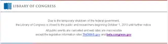 - ↑ (en) Congressional Research Service: Shutdown of the Federal Government: Causes, Processes, and Effects, September 25, 2013