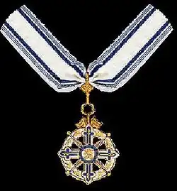 Het lint van de Orde wordt "en sautoir", dat wil zeggen om de hals, gedragen en is het eigendom van de gedecoreerden. Dames dragen het kruis aan een strik op de linkerschouder.