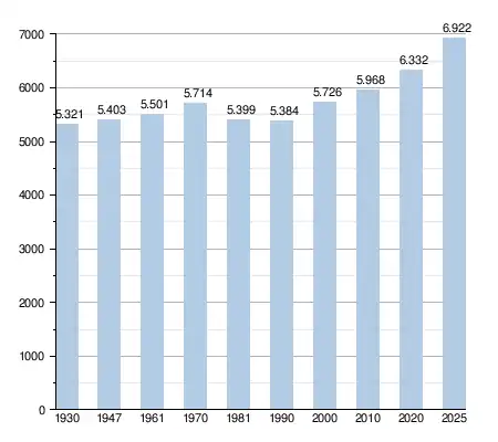 - Bronnen:NIS, Opm:1930 tot en met 1981=volkstellingen; 1990 en later= inwonertal op 1 januari